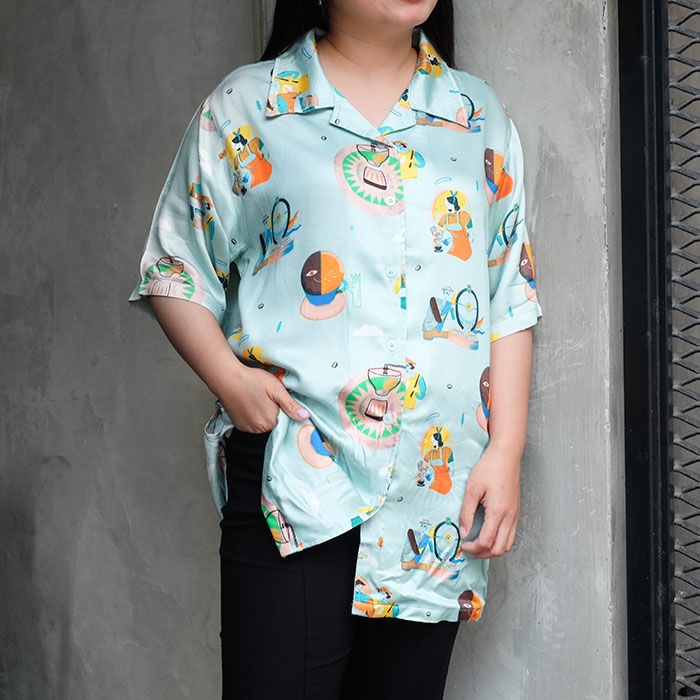 Otten - Kemeja Bowling Neck Shirt (Light Green) - Size - XL